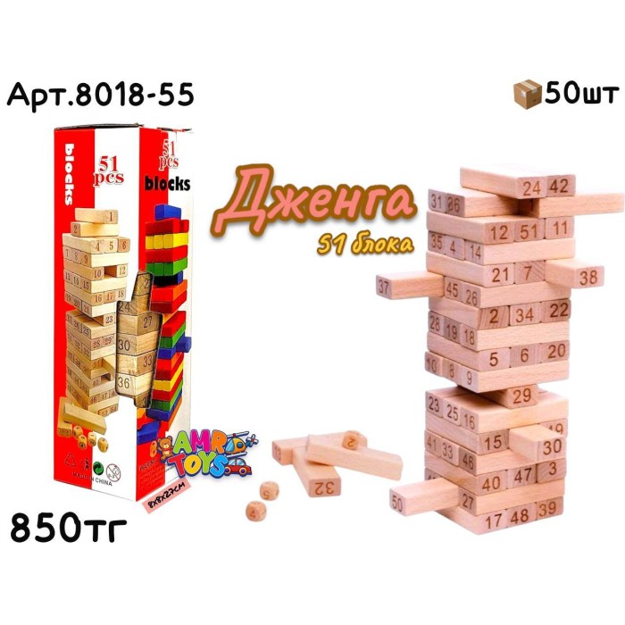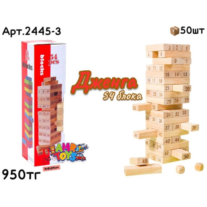 Описание Дерево Игра ДЖЕНГА 54 блока ЦИФРЫ 2445-3