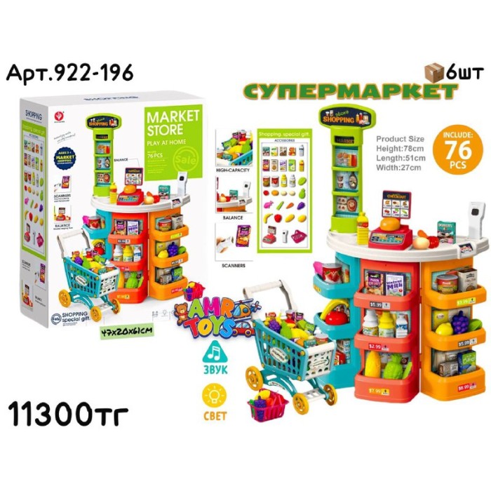 Игровой н-р СУПЕРМАРКЕТ с корзинкой и тележкой 76дет. 922-196