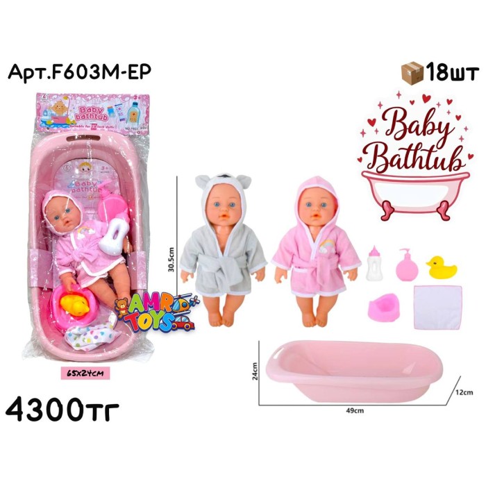 Описание Кукла Baby Пупс в Ванне с аксессуарами 2цв F603M-EP