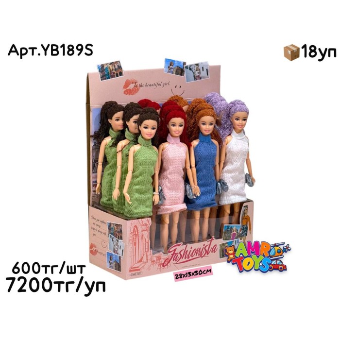 Описание Кукла Барби FASHIONISTA в вязаном платье из 12шт YB189S