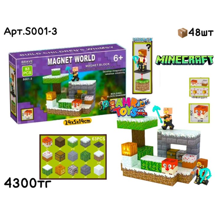 Описание Конструктор Магнитный Minecraft 83pcs фиолет. S001-3