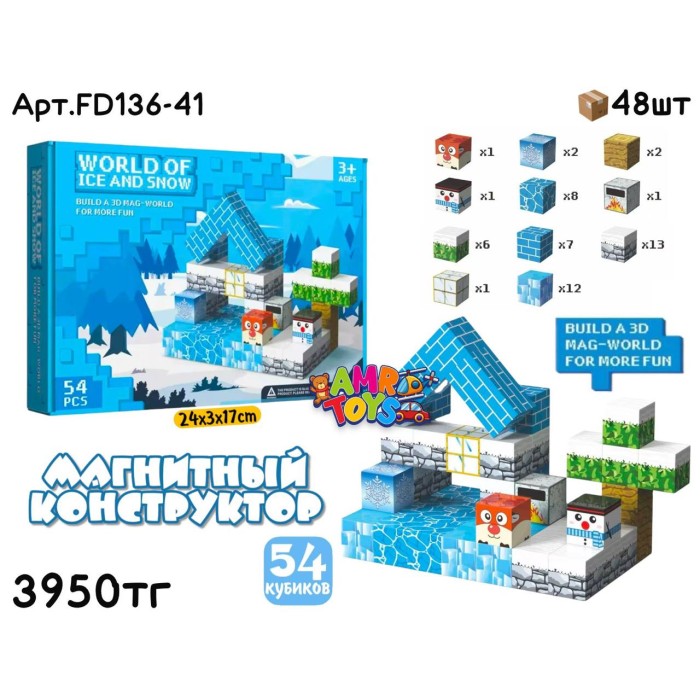 Описание Конструктор Магнитный Minecraft Зима 54pcs FD136-41