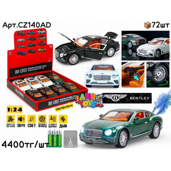 Описание Метал Маш. BENTLEY Continental с дымом 3цв 1:24 ШТУЧНО CZ140AD