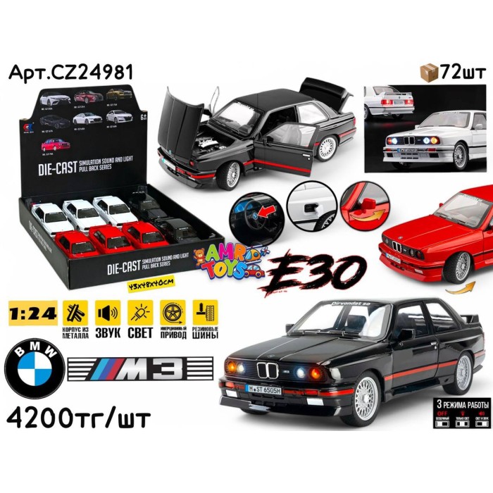 Описание Метал Маш. BMW E30 M3 однотон. 3цв черн. упак. 1:24 ШТУЧНО CZ24981