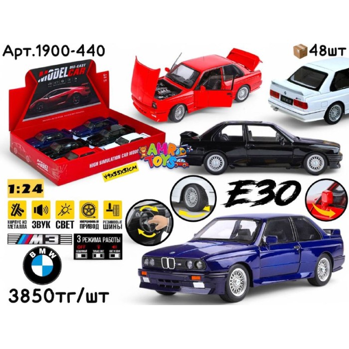 Описание Метал Маш. BMW E30 M3 однотон. 4цв 1:24 ШТУЧНО 1900-440