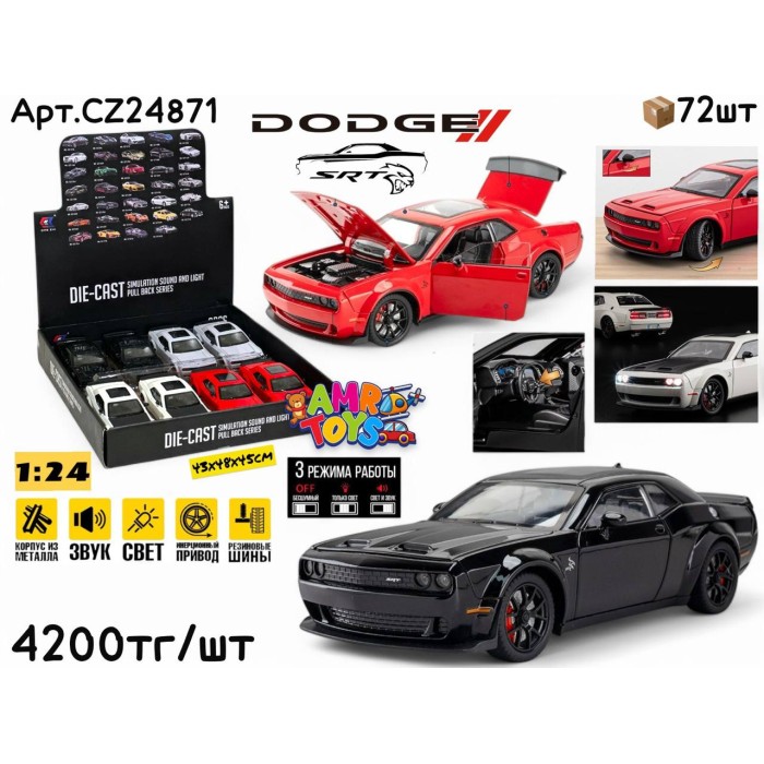Описание Метал Маш. DODGE Challenger SRT 3цв 1:24 ШТУЧНО CZ24871