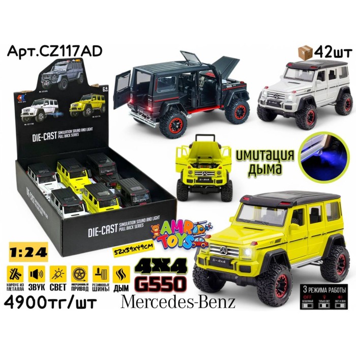 Вопросы и ответы (FAQ) Метал Маш. MB G550 4x4 с дымом 3цв 1:24 ШТУЧНО CZ117AD