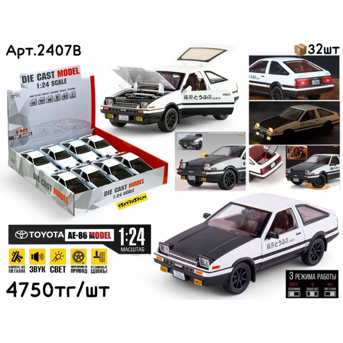 Описание Метал Маш. TOYOTA AE86 2цв 1:24 ШТУЧНО 2407B
