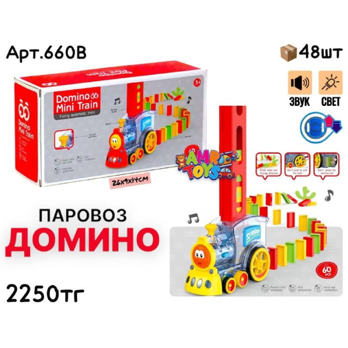 Описание Музыкал. Паровозик Домино 2цв 660B