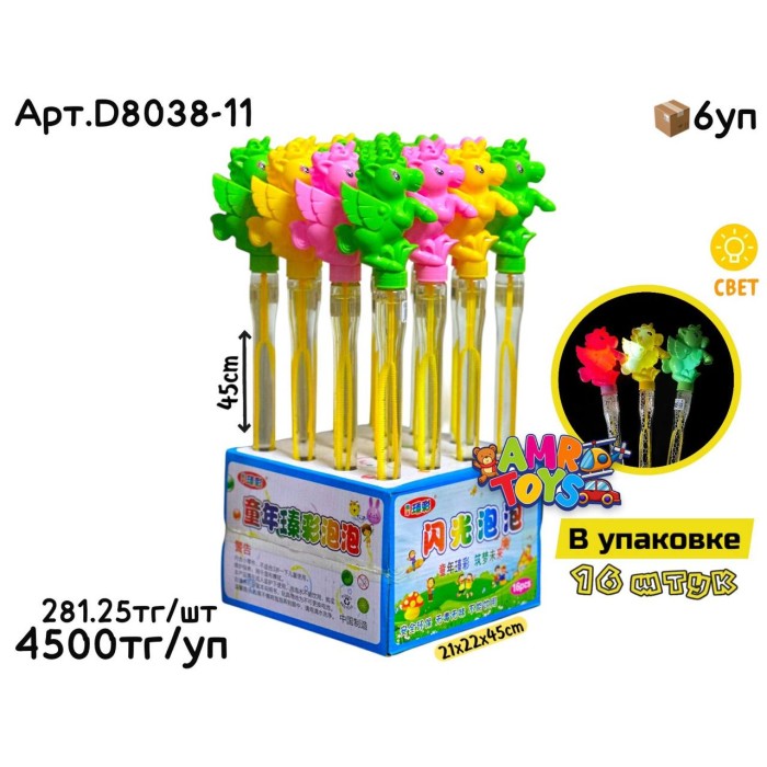Мыльные палочки Единорожка 45cm свет. из 16шт D8038-11