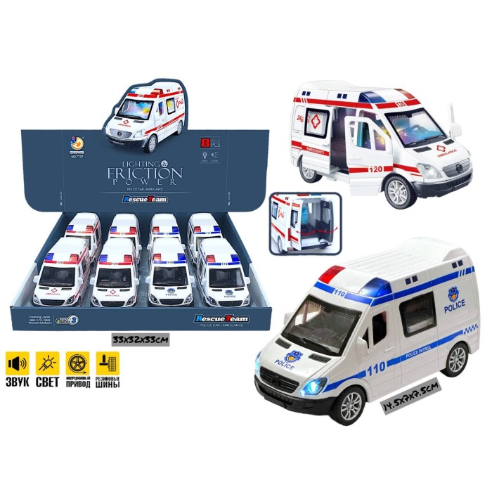 Описание Машинки в шоубоксе Фургон Скорая Полиция из 8шт 7737
