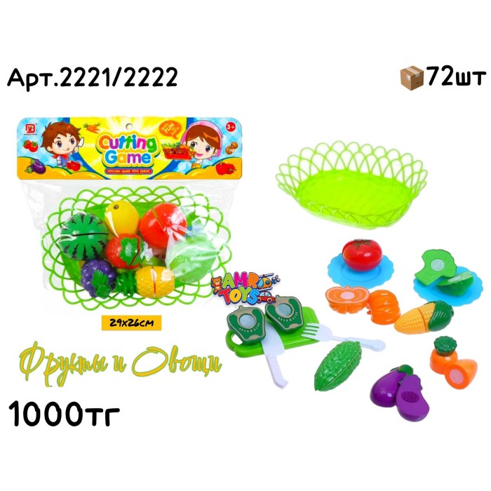 Набор резующих фруктов овощей с корзинкой 2 вида 2221/2222