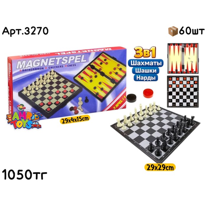 Описание Игра Шахматы MAGNETSPEL Магнитные 3в1 бол. 3270