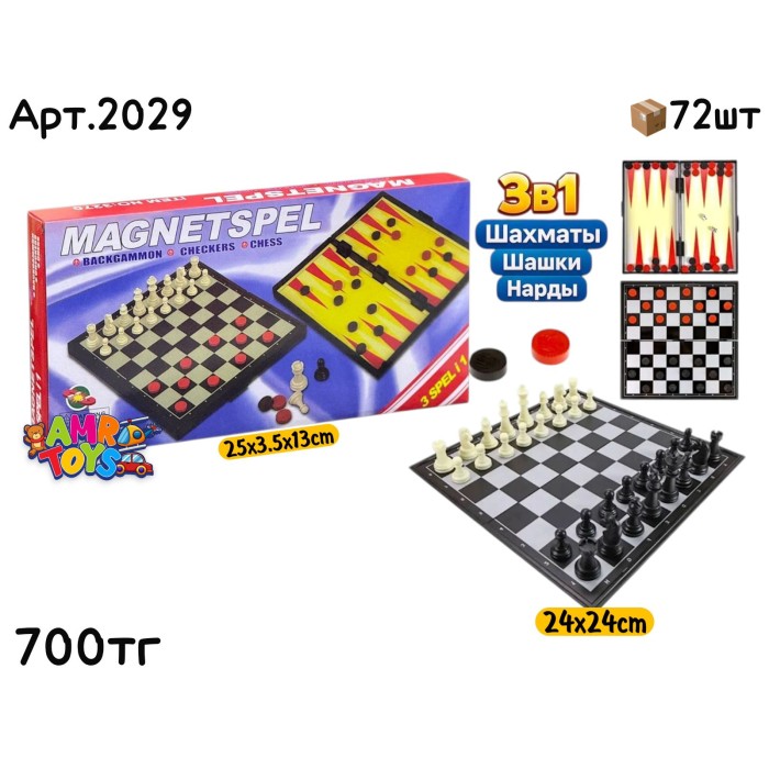 Описание Игра Шахматы MAGNETSPEL Магнитные 3в1 сред. 2029