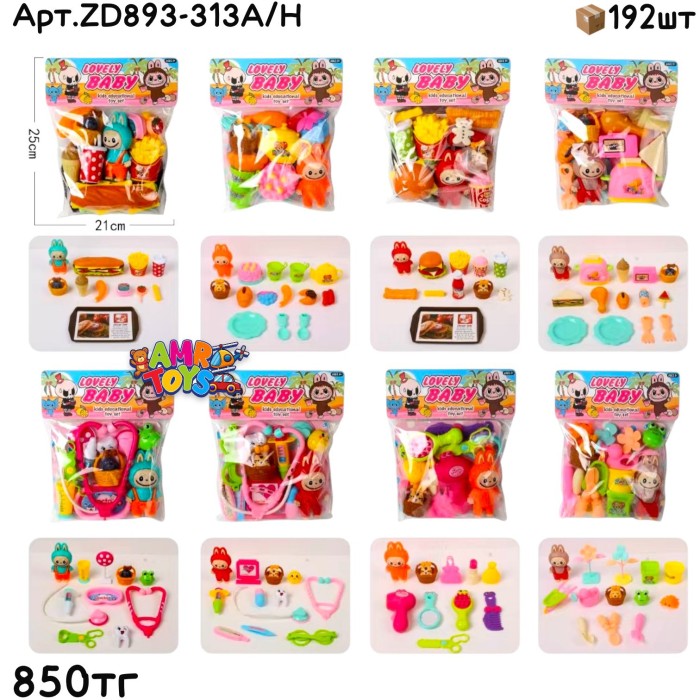 Описание Игровой н-р Labubu Посуда Фастфуд Фен Доктор 8 видов ZD893-313A/H