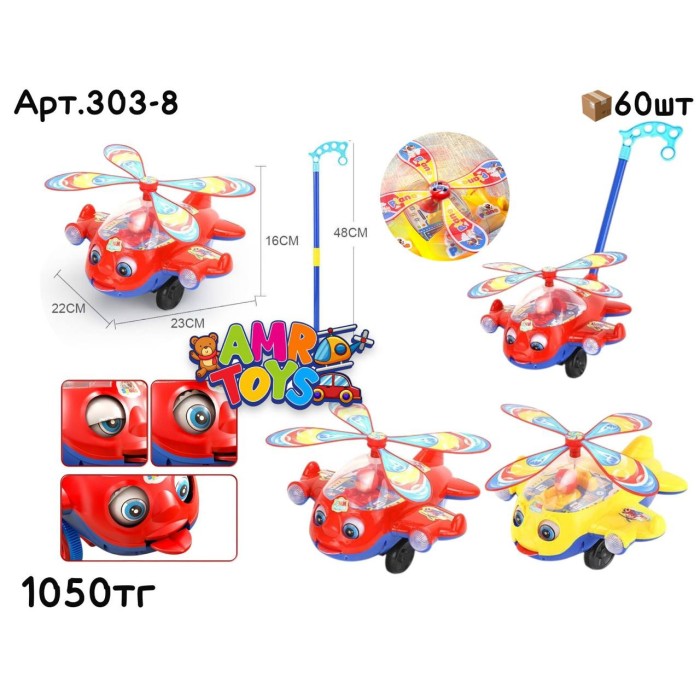 Описание Каталка Вертолет с пилотом 2 цв. 303-8