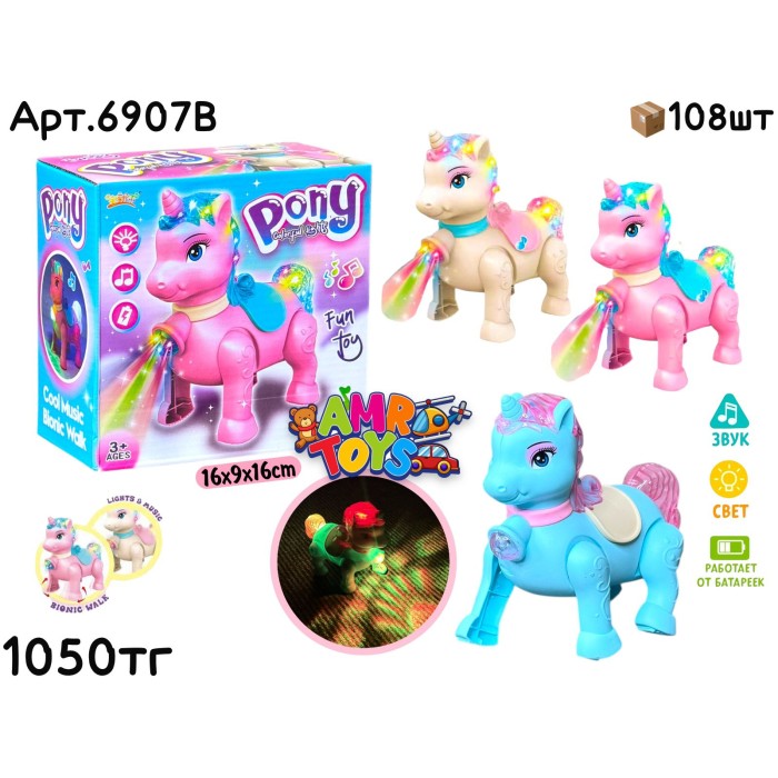 Описание Музыкал. Поняшка Ходячая 3D свет. 3цв. 6907B