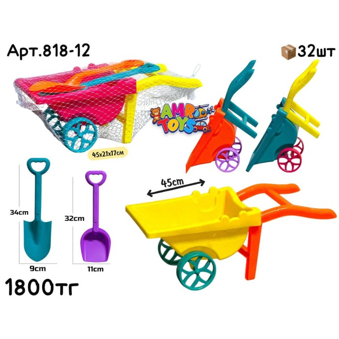 Описание Песочный набор Тележка с лопатами 4цв 818-12