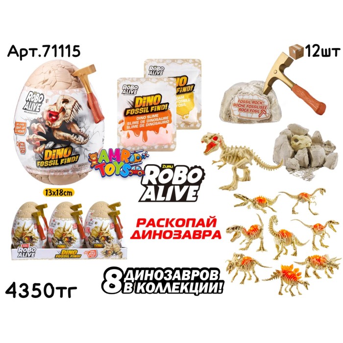 Описание Питомцы ZURU DINO FOSSIL FIND 71115