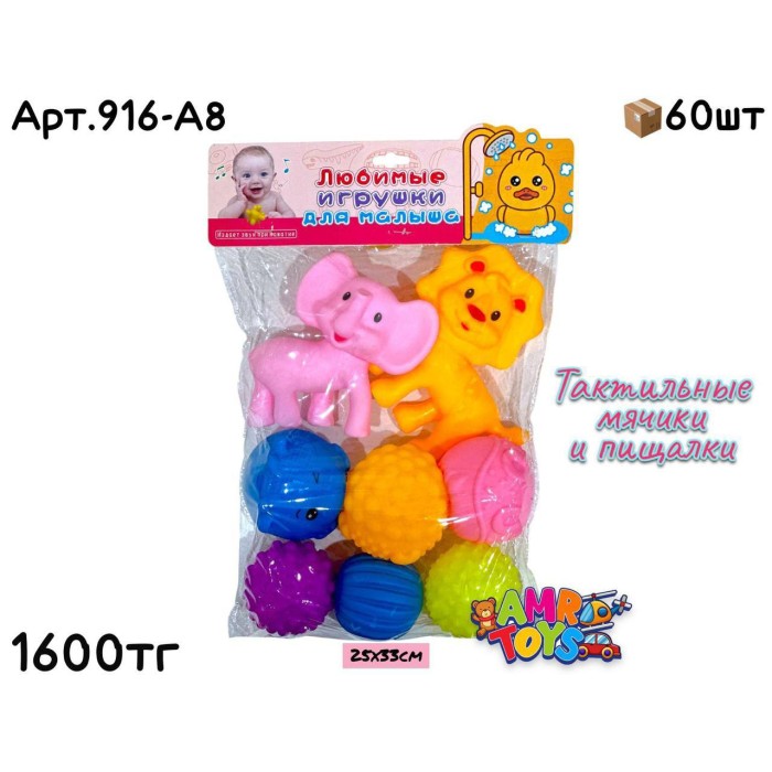 Описание Развивающие Тактильные Мячики и Животные из 8шт 916-A8
