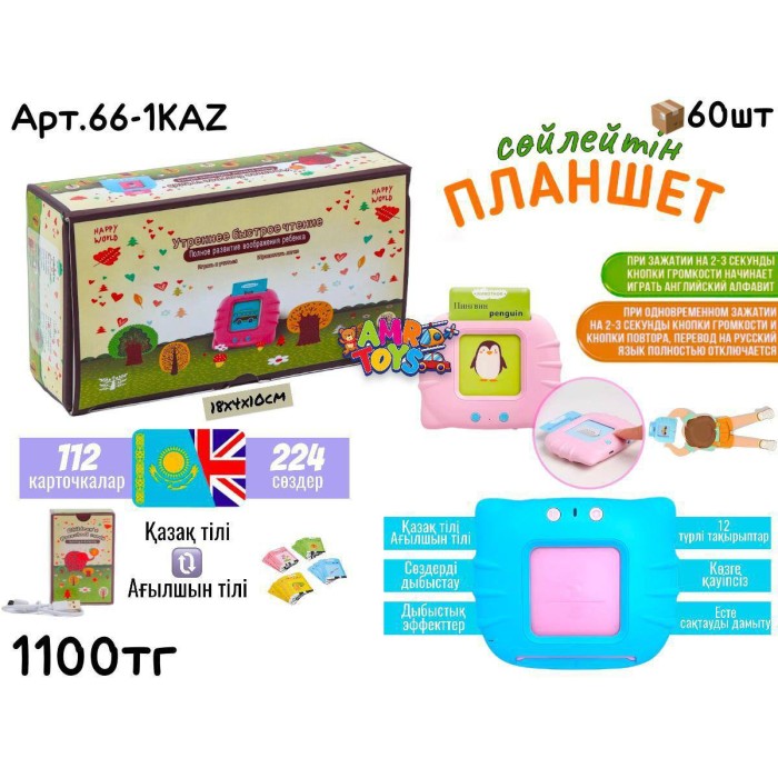 Описание Развивающий Планшет с карточками Казахский 66-1KAZ