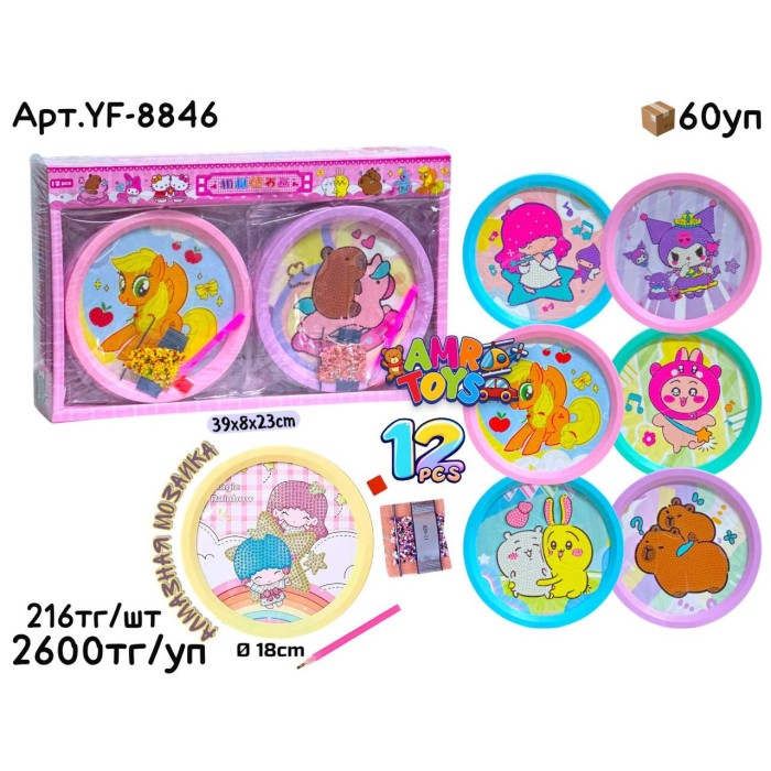 Описание Творчество Алмазная Мозайка Круг Мультяшки из 12шт YF-8846