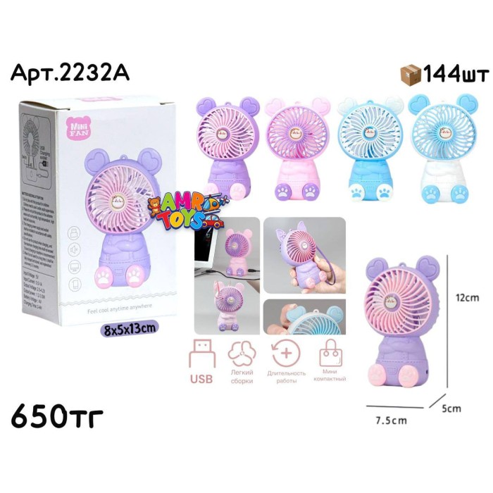 Вентилятор MINI FAN Мишка с ушками 4цв 2232А