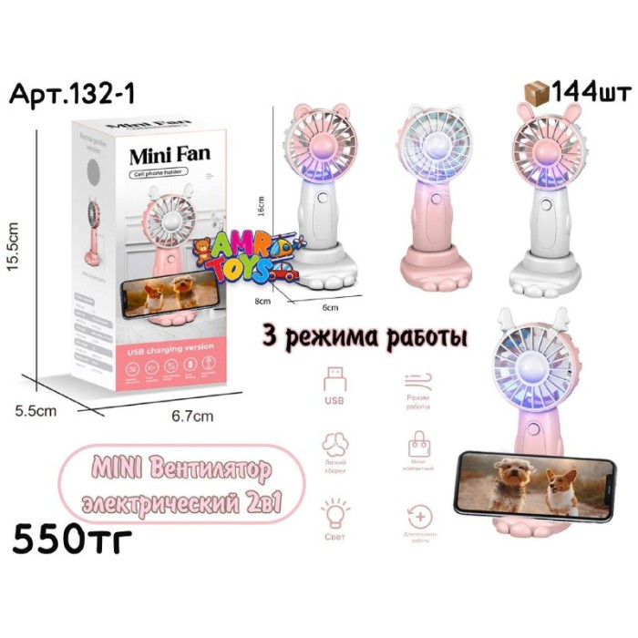 Вентилятор MINI FAN Ушки с подставкой 4 вида 132-1